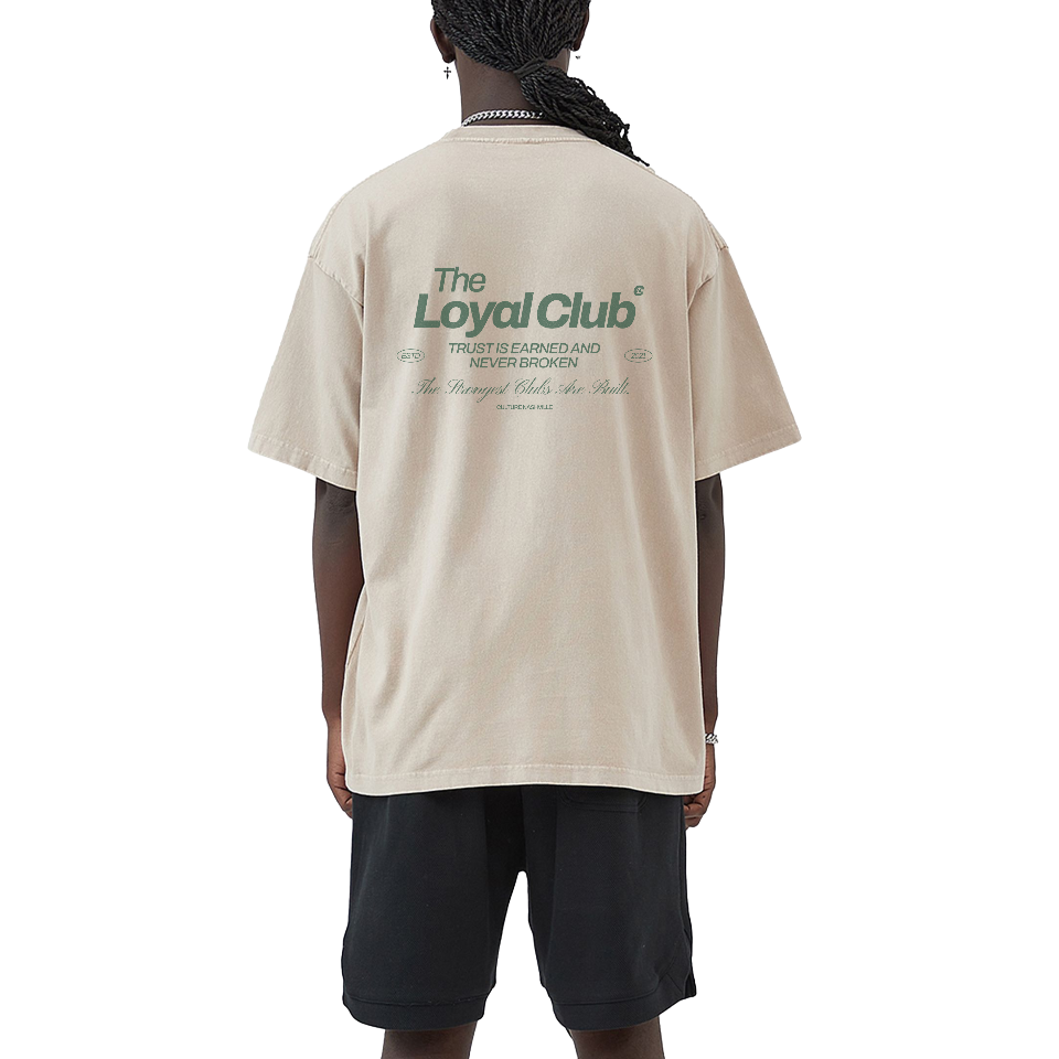 For the ones who move through the world with purpose. The Loyal Club Oversized Tee is an elevated take on streetwear, where understated luxury meets undeniable style. With its loose, boxy fit and snow-washed finish, this tee embodies a raw, effortless vibe. Crafted from 100% cotton (250 g/m²), it provides the perfect balance of comfort and durability, while the slight stretch ensures it keeps its shape after every wear. A minimalistic logo on the front and bold branding on the back make this piece a subtle flex.